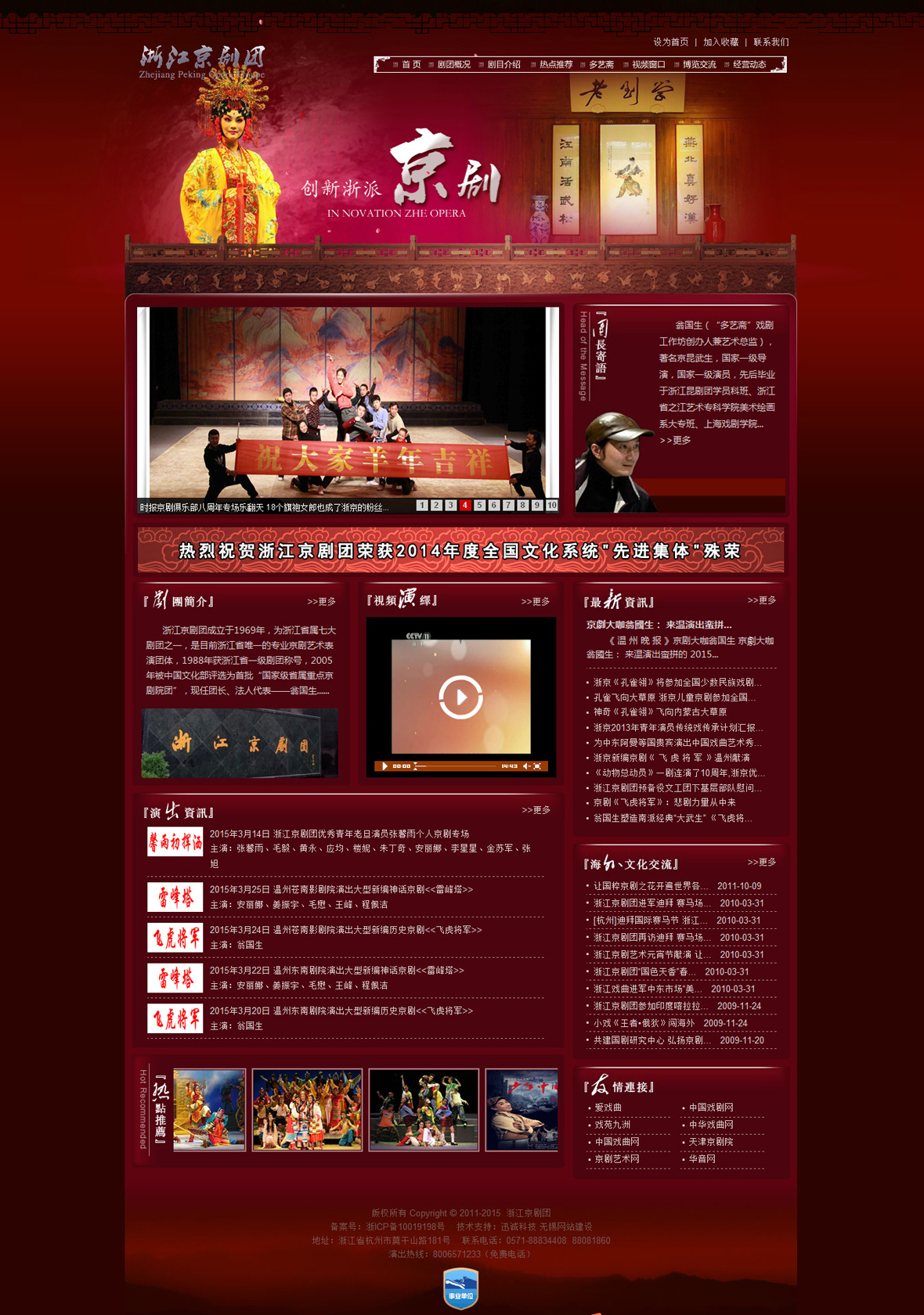浙江京劇團成立于1969年,爲浙江省屬七大劇團之一,是目前浙江省唯一的專業京劇藝術表演團體,1988年獲浙江省一級劇團稱号,2005年被中國文化部評選爲首批“國家級省屬重點京劇院團”,現任團長、藝術總監——翁國生。